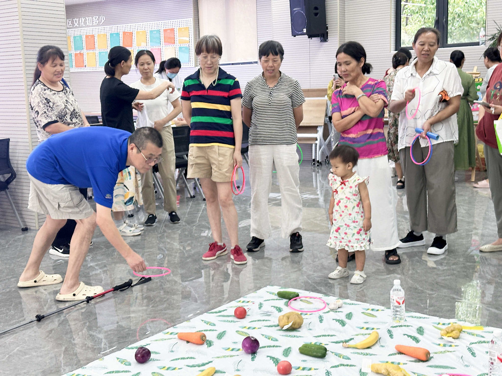 每完成一次垃圾分类挑战,参与者可获得3个套圈,用于套取现场摆放的新鲜蔬菜水果。活动现场欢声笑语不断,有的家庭全家齐上阵,互相加油鼓劲。一位参与活动的阿姨开心地说:"既能学到实用的垃圾分类知识,又能带回家新鲜蔬菜,真是一举两得的好活动!"