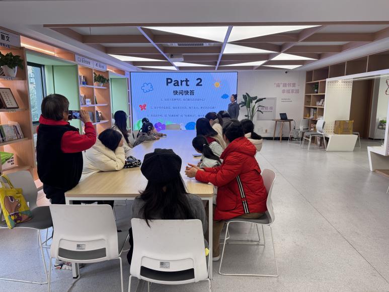 紧随其后的 “快问快答” 环节将现场气氛推向首个高潮。题目紧扣家庭教育与本次活动主题,巧妙融入了环保知识。“孩子发脾气时,第一步怎么做?”“香薰制作后的玻璃瓶属于什么垃圾?”……家长们踊跃举手,孩子们也化身“智囊团”,争相为家长出谋划策。在欢笑与抢答中,科学的育儿理念与垃圾分类知识深入人心,每位参与的家庭都收获了一份精心准备的小礼品。