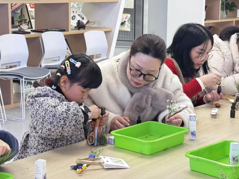 最受期待的 亲子无火香薰DIY 环节,则让活动现场瞬间变为温馨的“亲子工坊”。在讲师指导下,家长与孩子携手合作,精心挑选喜欢的精油香型,专注地调配比例、放入干花与装饰。他们轻声交流着对香气的偏好,共同构思着作品的寓意。不一会儿,一瓶瓶独一无二、凝聚着家庭情感与创意的“情绪香薰”陆续诞生。有家庭将作品命名为“宁静的港湾”,希望家中多一份平和;有的则取名“阳光的味道”,寄托对快乐生活的向往。此刻,协作、沟通与爱意,在指尖流淌,于芬芳中凝聚。
