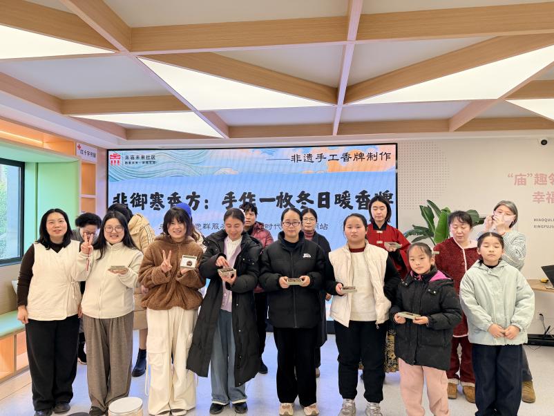 活动结束时,居民们手持自己制作的香牌合影留念,香气萦绕中,笑容温暖。这些独一无二的香牌将在冬日里慢慢阴干,随时间推移散发出愈发醇厚的香气,如同社区邻里情,愈久愈浓。