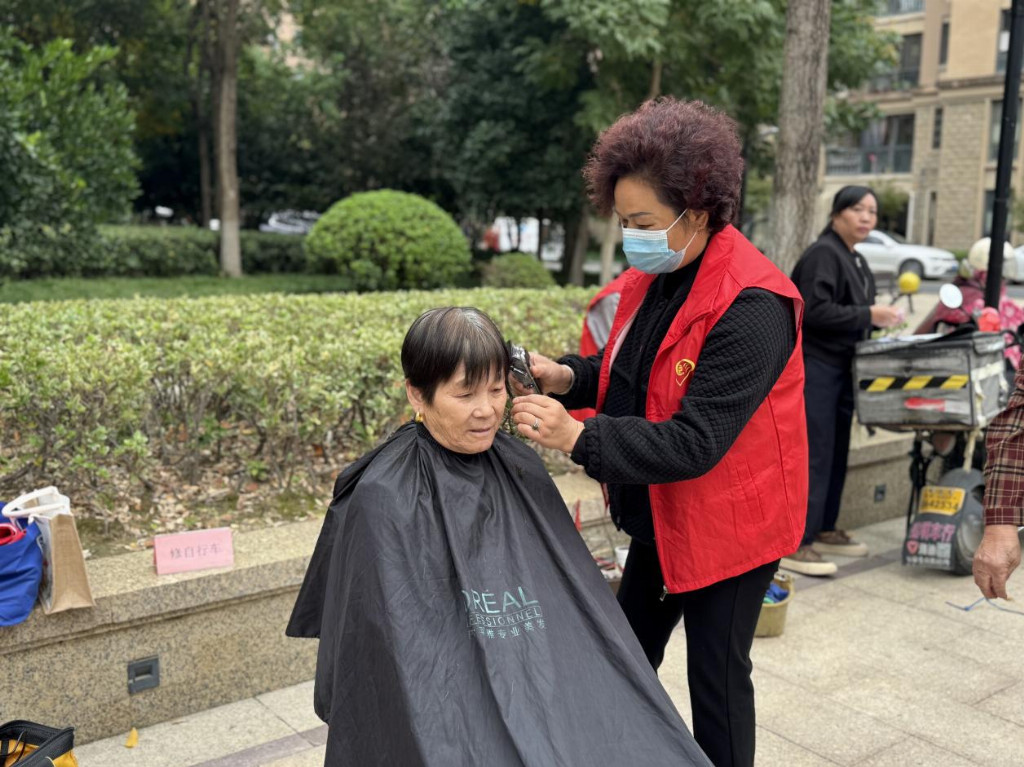 “师傅,给我修一下点,利索些!”理发区的志愿者手法娴熟、动作轻柔,一边与居民唠着家常,一边根据大家的需求精心修剪。伴随着剪刀的“咔嚓”声,居民们的发型变得清爽利落,脸上也露出了满意的笑容。一位刚理完发的大妈照着镜子乐呵呵地说:“这手艺真不赖,感觉年轻了好几岁!”